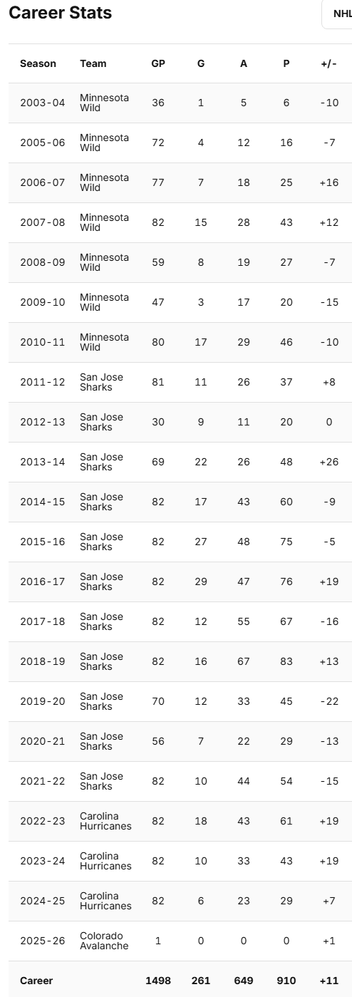 No, just no. Over ten years in the league, 22 goals as a high water mark. I am sure he is a grit guy, but why not have cap space for the deadline? If Guerin signs him he should be fired immediately but I think he will sign him to a 3 year, no-move deal.1 point