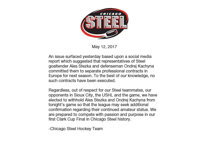 Backed by the most dominant netminder of the postseason, the Chicago Steel won their first ever Clark Cup after a 2-1 overtime win in Game 5 over the Sioux City Musketeers Tuesday night. Despite the well-earned hardware, rumors of professional contracts in his native Czech Republic should pique the concern of the Wild organization and fans alike.