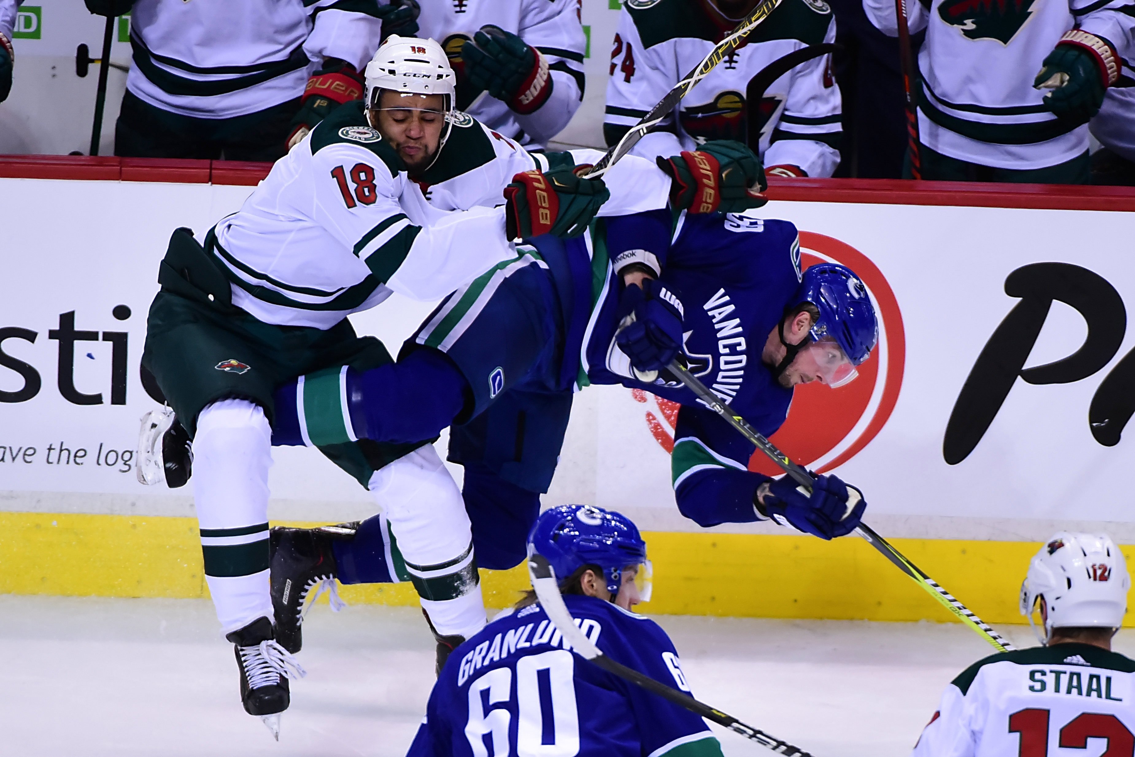 A few minutes into the second, Staal spent some time in the penalty box with an interference call on the Wild’s power play. It proved costly as Jake Virtanen beat Devan Dubnyk with a long-range shot on the glove side for a 2-1 Canucks lead 5:15 into the second period. The Wild came into the game 10-for-10 on the penalty kill through the past two games and 17-for-18 in the past four.